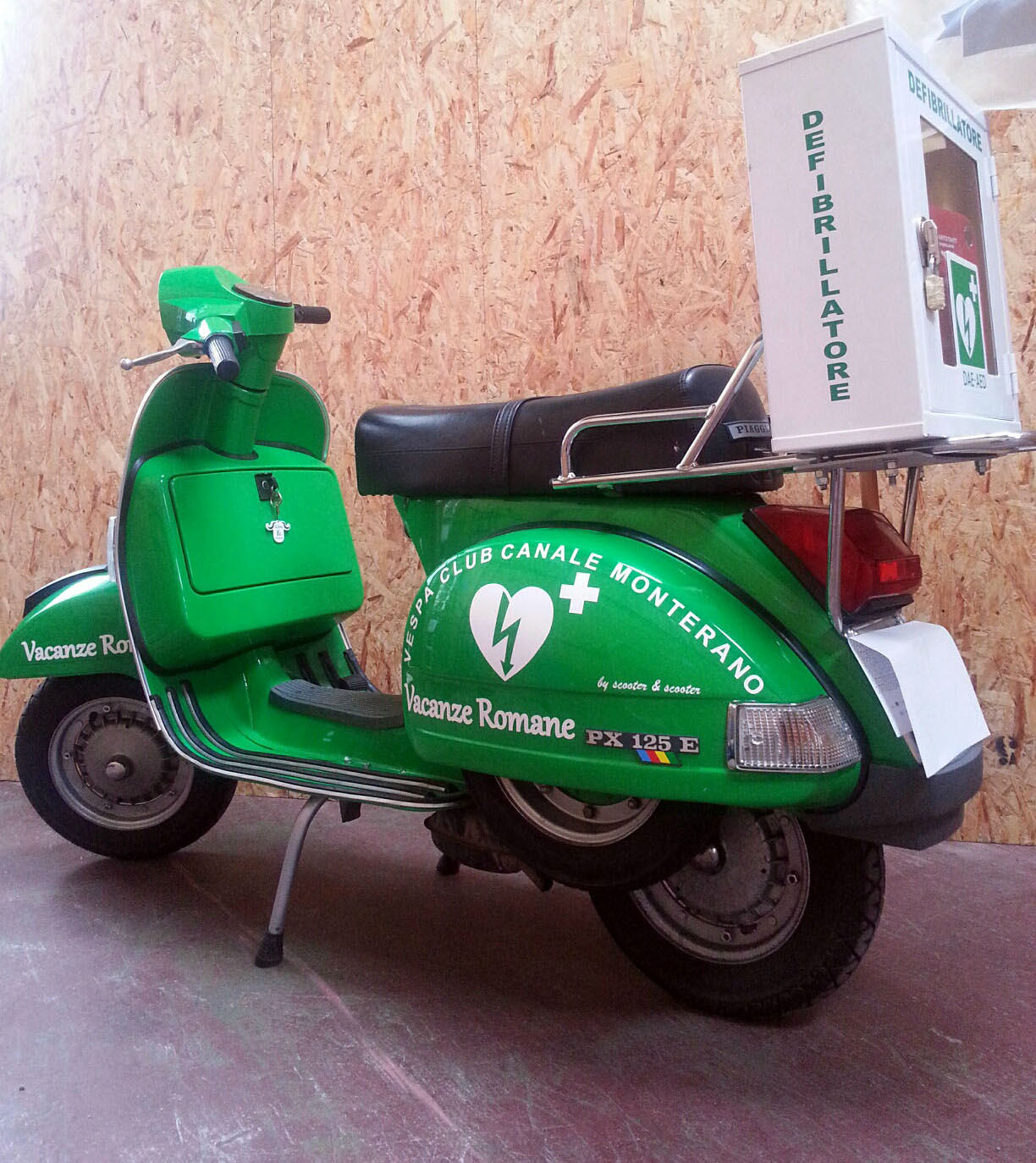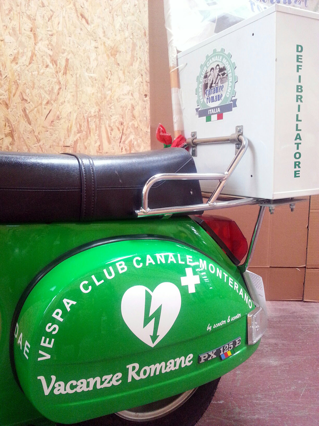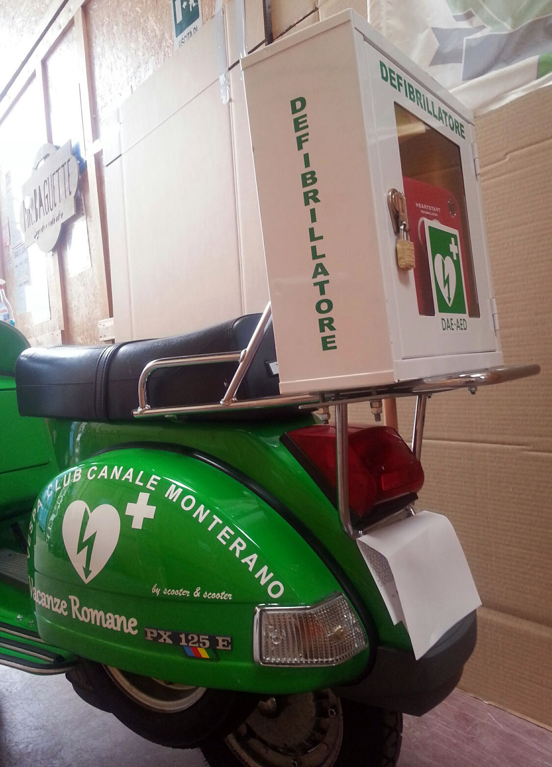 SIAMO ORGOGLIOSI DI AVERE LA NOSTRA VESPA DAE (Defibrillatore Automatico Esterno)