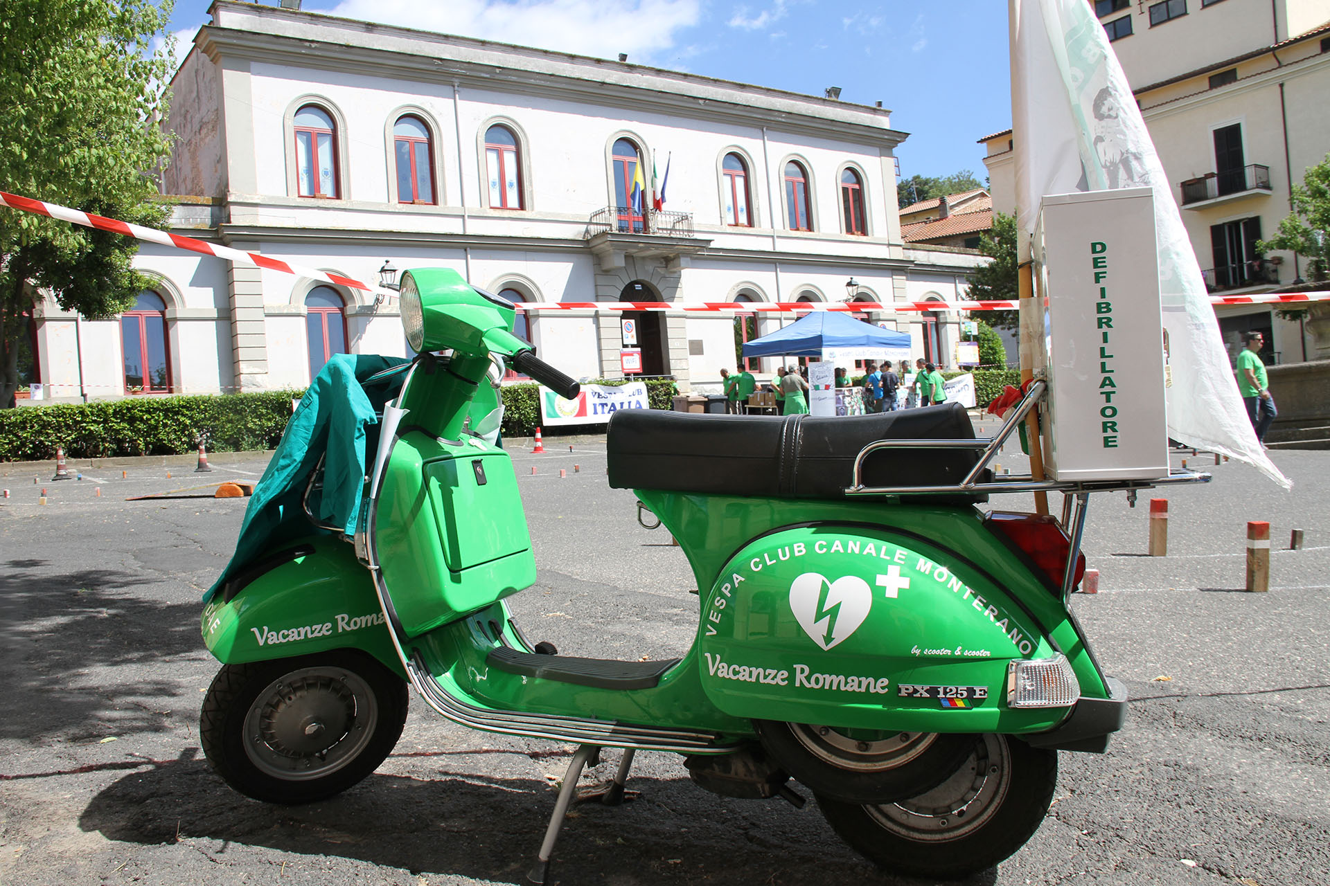 Il nostro club è orgoglioso di possedere una vespa dotata di defibrillatore che viene regolarmente usata durante tutti i raduni, abbiamo soci professionisti nel campo medico in grado di usarlo correttamente e altri soci che hanno regolarmente fatto il corso per l' uso del defibrillatore. Assistere a una situazione d’emergenza nella quale una persona perde conoscenza a seguito di arresto cardio-respiratorio è un evento raro, ma non escludibile. Un arresto cardiaco può colpire chiunque, ovunque, in qualsiasi momento. In Italia statisticamente ogni anno una persona su mille ne è colpita (oltre 60.000 casi all’anno). Se l’arresto cardiaco non è prontamente trattato, nel giro di pochi minuti può evolvere in peggio.